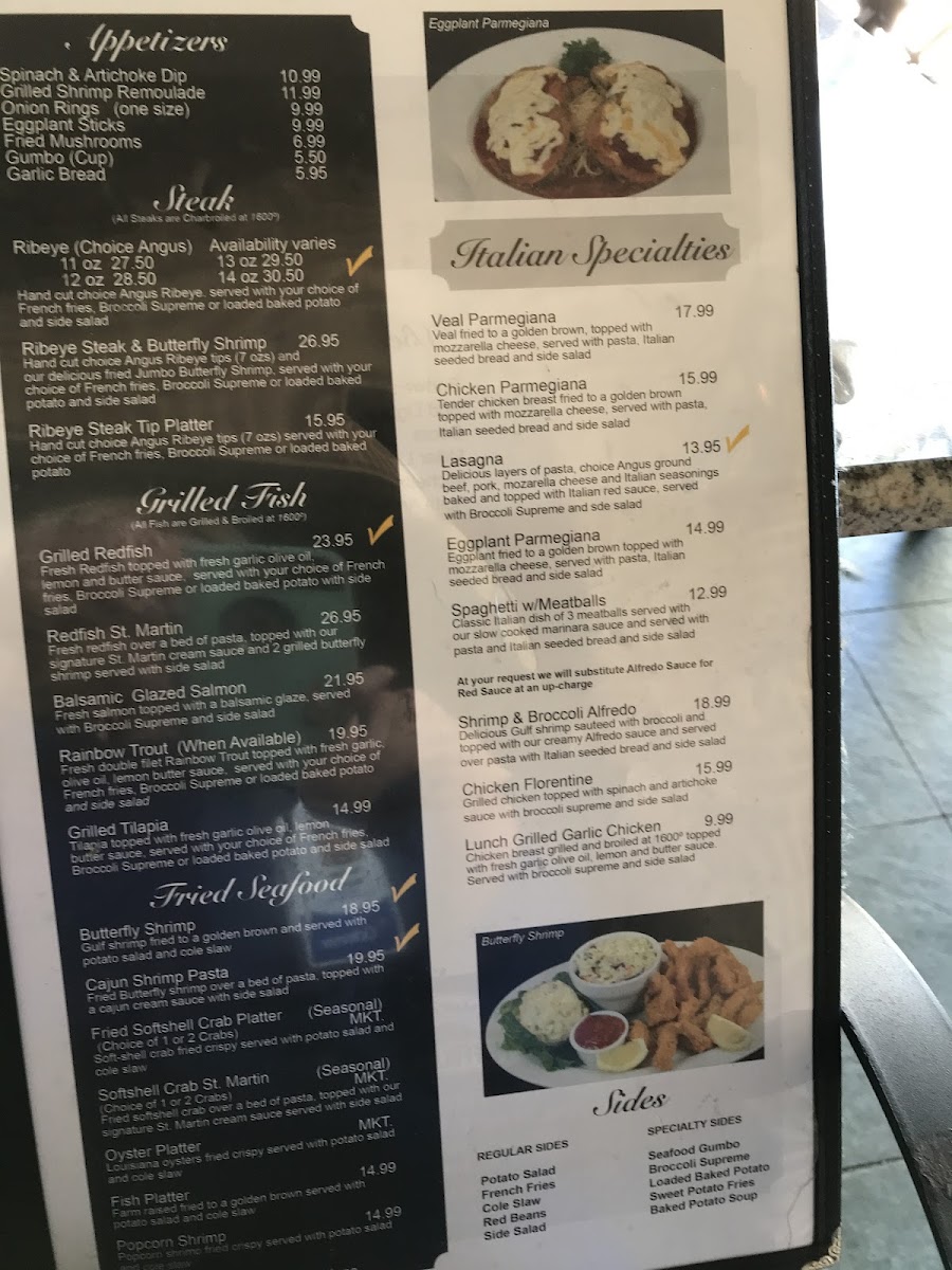 - Variety: Diners can indulge in dishes like Cajun pasta, fried eggplant, and veal Parmesan.